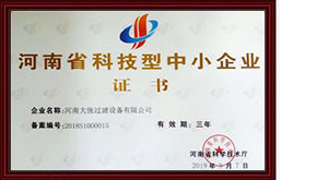2020年9月9日——河南大張過(guò)濾設(shè)備有限公司榮獲“高新技術(shù)企業(yè)”證書(shū)